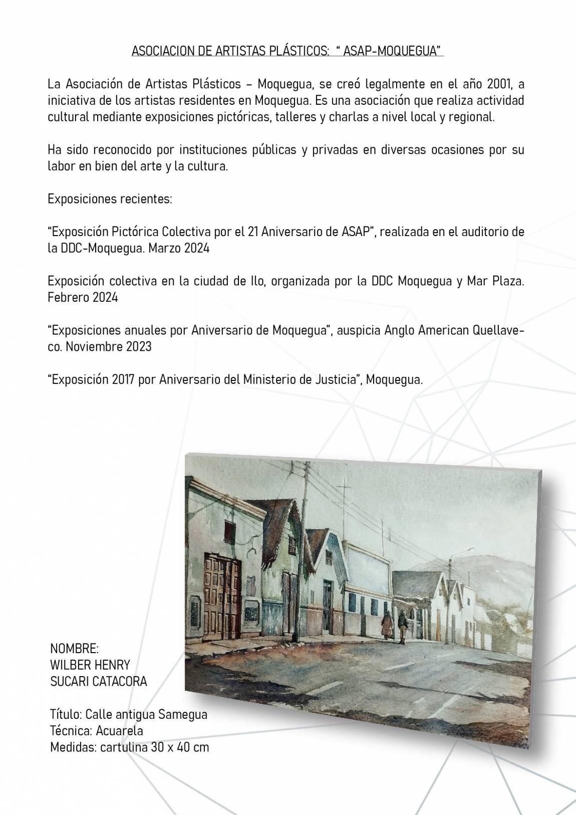 El Museo Contisuyo y la Asociacion de Artistas Plásticos de Moquegua (ASAP), por fiestas patrias presenta la exhibición temporal de Arte "Estructuras".