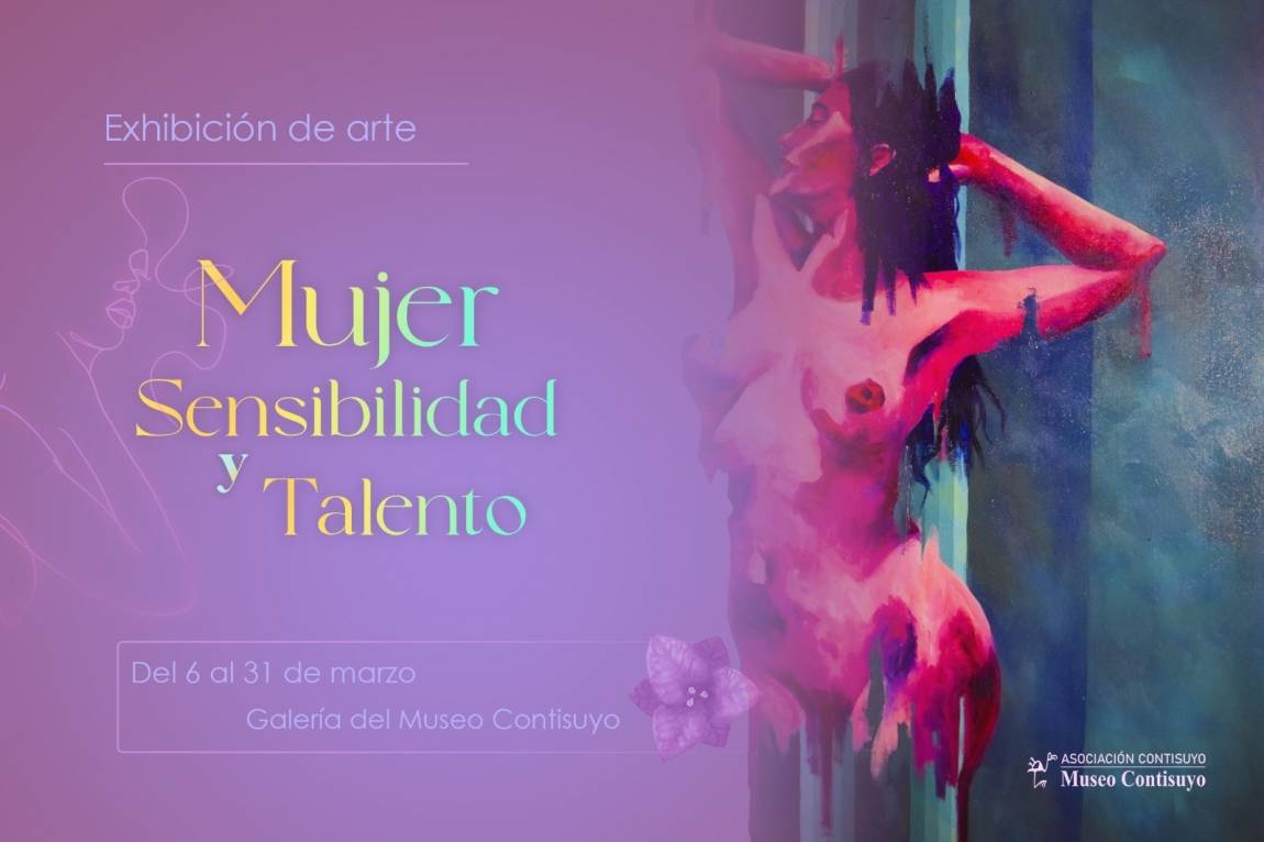 Exhibición de arte "Mujer, sensibilidad y talento", destaca no solo la capacidad artistica de la mujer, sino tambien busca visibilizar su participación en la historia del arte. A pesar que, tradicionalmente, no existian las mismas oportunidades que tenían los hombres, su contribucion ha sido significativa. En los últimos años, ha habido un creciente reconocimieinto hacia las artistas mujeres. Siguiendo el ejemplo de Museos y galarías de todo el mundo, el Museo Contisuyo, se une a la conmemoración del día internacional de la mujer, ridiendo homenaje a su gran capacidad, innata sensibilidad y enorme talento.